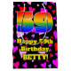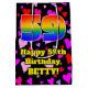 This joyful and colourful birthday themed gift bag design features a large number “59” with a rainbow spectrum gradient inspired pattern, along with the message “Happy 59th Birthday,”, and a custom name. The background features a pattern of heart shapes with colours like pink, red, and purple. A birthday themed gift bag like this might be a fun way to wrap a gift or present being given to celebrate somebody’s fifty ninth birthday. [~Z0000551]