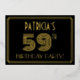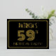 The front of this 1920s-1930s style inspired fifty-ninth birthday party foil invitation features a custom name, a large art deco style inspired number “59TH”, the message “BIRTHDAY PARTY!”, and a border pattern consisting of lines. The front also has a black-coloured background by default, but it can be customized to a different colour if desired. The back features personalized details about the event, such as the date, time, location, and any other relevant information. Elegant, luxurious, personalized invitations like these might be used to invite guests to a birthday celebration/party being held to celebrate somebody’s 59th birthday. [~Z0000590]
