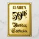 The front of this fancy fifty-ninth birthday celebration foil announcement card design features the message “59th Birthday Celebration” in ornate script-style text. It also has a customizable name. The back features personalized details about the event, such as the date, time, place/venue, and any other important information. Ornate, opulent, customizable invitations like these might be used to invite guests to a birthday celebration/party being held in celebration of somebody’s fifty-ninth birthday. [~Z0000596]