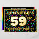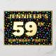 The front of this joyful and eye-catching fifty-ninth birthday celebration/party foil invitation card design features a personalized name, a large number “59th”, the message “BIRTHDAY PARTY!”, and a border. The background of the front has a fun, colourful starfield pattern. The back features personalized details about the event, such as the date, time, place/venue, and any other important information. Customizable invitations like these might be a fun way to invite attendees/guests to a birthday party/gathering being held to honour somebody’s 59th birthday. [~Z0000600]