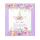 This unicorn is adormed with fresh vivid purple, blue and pink watercolor violets, golden stars and a glittery gold horn. This design graces an entire suite of birthday products including basic supplies as well as creative personalized gifts with this magical theme.