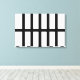 Inspired by a map symbol for railroad tracks, this bold geometric pattern features five vertical black lines split in half by a horizontal black line down the centre. The black on white pattern has a sleek look.