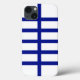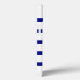 Inspired by a map symbol for railroad tracks, five blue stripes are split in half by a blue line down the centre. The blue on white geometric pattern has a clean, sleek look.