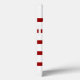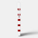 This bold geometric pattern, inspired by a railroad map symbol, features a central vertical red stripe crossed perpendicularly by five horizontal red lines. The red on white pattern has a strong spartan look.