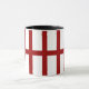 This bold geometric pattern, inspired by a railroad map symbol, features five vertical red lines split in half by a horizontal red line down the centre. The red on white pattern has a strong spartan look.