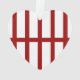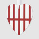 This bold geometric pattern, inspired by a railroad map symbol, features five vertical red lines split in half by a horizontal red line down the centre. The red on white pattern has a strong spartan look.