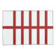 This bold geometric pattern, inspired by a railroad map symbol, features five vertical red lines split in half by a horizontal red line down the centre. The red on white pattern has a strong spartan look.