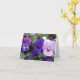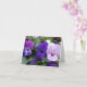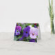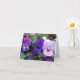 A beautiful trio of three pansies in lavender, purple and brilliant blue create customizable cards with matching stamps.