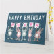 Carte d'anniversaire pour une personne ayant un nom de 5 lettres. Carte d'anniversaire amusante avec l'illustration de lapins en rose et bleu. Les lapins tiennent des cartes pour épeler le nom.
