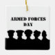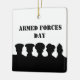 Each of these silhouettes represents each branch of the U.S. Military (L to R) Navy, Marines, Coast Guard, Army and Air Force. Some of the hats are so similiar, I chose those that were a bit more distinguished. The front text can be changed if you want to use this ornament for a different purpose than Armed Forces Day. And, the back text is totally up to you. Designed by Sheila Cicchi, Brownielocks.com. All Rights Reserved. NOTE: Due to the design, this can only be purchased on SQUARE ornaments.