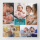 5 Photo Collage Family Is Everything Quote Teal Square Wall Clock