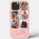 5 Photo Modern Trendy Simple Heart Personalized Name iPhone Phone Cases features five of your favourite photos with your personalized name in elegant pink calligraphy script accented with a love heart. Personalize by editing the text in the text box provided. Perfect for birthday, Christmas, Mother's Day, baby showers, bridal showers, mom, sister, cousins, best friends and more. PHOTO TIP: centre your photo before uploading to Zazzle. Designed by ©Evco Studio www.zazzle.com/store/evcostudio