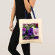 A handsome trio of lavender, purple and blue pansies decorate this pretty, tote. Change colour/style/text to suit your taste.