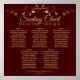 Ce tableau montre les assignations de sièges pour cinq tables à votre réception de mariage. Le design est simple mais élégant avec du texte doré, un arrière - plan de couleur chocolat ou auburn, et une belle bordure florale en filigree dentée.