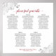 This 5 table wedding seating chart will help your guests find the right table at your reception. The design is both simple and elegant with dark grey and red text on a white background and lacy silver faux foil floral filigree in the corners. The title reads "please find your table" in an elegant script calligraphy. Sophisticated and chic. Includes table assignments for 50 guests with 10 seats per table.