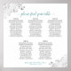 Ce tableau de sièges mariage de 5 tables aidera vos invités à trouver la bonne table à votre réception. Le design est à la fois simple et élégant avec du gris foncé et du texte turquoise ou turquoise sur un arrière - plan blanc et un faux feutre argenté en dentelle dans les coins. Le titre dit "s'il vous plaît trouvez votre table" dans une élégante calligraphie de script. Sophistiqué et chic. Comprend l'assignation de table pour 50 personnes avec 10 sièges par table.