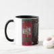 Une tasse à deux tons avec les cinq billets premières productions de PlaysInPerpetuity des cinq.