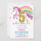 5ème Unicorn Invitations d'anniversaire