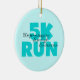 Aqua blue text that reads 5K RUN and black text that reads Determination Strength Endurance on running T-shirts, hoodies, buttons, bags, mugs, stickers, and other products for anyone who is training for or already has run a 5K!