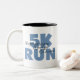 Blue text that reads 5K RUN and black text that reads Determination Strength Endurance on running T-shirts, hoodies, buttons, bags, mugs, stickers, and other products for anyone who is training for or already has fun a 5K!