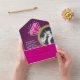 This fifth wedding anniversary dinner party event invitation has a detachable RSVP so it can be sealed, so no envelope is required. A pink Tourmaline gemstone in a gold ring graphic wedding anniversary invitation, personalize with your own wedding anniversary party details and reply meal options as well as including two photos of the anniversary celebration couple. Make it easy for you and your guests to send as no envelope is required simply handwrite on your sealed invitations and your guests can reply with the detachable rsvp for quick and easy guest meal responses either by posting in the mail or emailing. Ideal for a formal set meal event. The fifth wedding anniversary is associated with the gemstone pink tourmaline. Other matching items are available. Graphics and design by Sarah Trett for www.mylittleeden.com and www.mylittleedenweddings.com