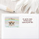 Address labels with my artwork of two wooden hearts floating on the water under a rainbow. Text says "5 Years" with a sample name and address.