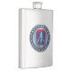 The product is a good size and came exactly as it was pictured. The lid is not attached to the flask, which could be dangerous on drunken nights... The print came out surprisingly well and looks very sharp. Would definitely recommend.