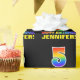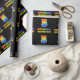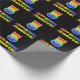 This cheerful, fun, and colourful birthday wrapping paper design features a large number "5" and the message "HAPPY BIRTHDAY,", both having a rainbow spectrum gradient inspired pattern colouring, along with a bold yellow customizable recipient name. The background is coloured black. Fun birthday themed wrapping paper like this could be used to wrap a gift or present being given to celebrate somebody’s 5th birthday. [~Z0000475]
