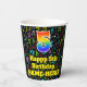 This joyful and cheerful music themed birthday paper cup design features a large number “5” with a rainbow spectrum gradient inspired pattern, along with the message “Happy 5th Birthday,”, and a personalized name. The background features an exciting and colourful pattern of various music notes and symbols of different colours and sizes. Colourful, vibrant paper cups like this might be fun to have at a birthday party being held to celebrate somebody’s fifth birthday. [~Z0000541]