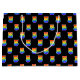 This fun and vibrant gift-bag design features the number "5" having a rainbow spectrum gradient inspired pattern. It also has a black-coloured background. A colourful gift bag like this might be used when preparing presents being given in honour of somebody’s 5th birthday, or perhaps a married couple’s fifth wedding anniversary, or some other 5th event. [~Z0000523]