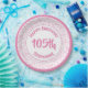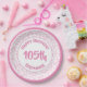 This over-the-hill design has a modern pnk and white random number pattern with milestone number 105 repeated in varied sizes and angles for an all-over print. There is a white circle in the centre for your text, and pnk and white rings around the rim.