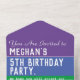 Bright colours and bold design in Stripes. 5th Birthday party invitation all-in-one card.
