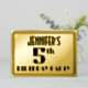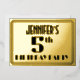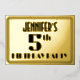 The front of this stylish fifth birthday celebration/party foil invitation card design features an editable name, an art deco look inspired number “5th”, the message “BIRTHDAY PARTY”, and a border pattern consisting of lines. The back features personalized details about the event, such as the venue/location, date, time, and any other important information. Stylish, elegant, personalized invitations like these might be used to invite attendees to a birthday gathering being held in celebration of somebody’s 5th birthday. [~Z0000606]