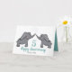 An illustrated 5th wood wedding anniversary card in green, grey and white with an elephant couple.