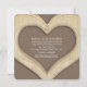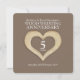 5th wood wedding anniversary brown personalized invitations. Beautiful hand made wooden heart effect printed graphics 5th Wood Wedding Anniversary party invitations on a brown background. Background colour can be changed if required. Customize with your own wood wedding party details. 5th Anniversary is traditionally associated with wood and the heart symbolizes love. Original wooden heart graphics and design by Sarah Trett www.sarahtrett.com for www.mylittleeden.com