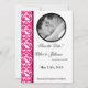 Ces adorables Hot Pink Dove Damask Enregistrer la date Photo Fiançailles Annonces sont imprimées sur un papier de 110 livres de couverture lisse, vibrante et mat de taille 5x7. Contient 50 % de contenu recyclé. Parfait pour tout baby shower, nuptiale, enregistrer la date, mariage, bachelorette, mariage, ou invitation d'anniversaire.