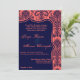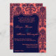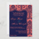 5x7 Navy Blue Coral Damask Lace Wedding Invitation