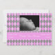 5x7 Pink Argyle Pattern Photo Birth Announcement