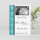 These adorable Teal Bird Damask Save the Date Photo Engagement Announcements are printed on a 5x7 sized smooth, vibrant, matte 110lb cover weight paper. Contains 50% recycled content. Perfect for any baby shower, bridal, save the date, wedding, bachelorette, wedding, or birthday invitation.