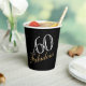 Elegant 60 and Fabulous White Script Birthday Paper Cups. Elegant design with trendy script in white and golden colours for a woman.