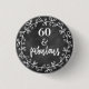 NewParkLane - 60th Birthday Custom Button, with fun quote '60 & Fabulous' in an elegant wreath with fun typography, against a black chalkboard background.