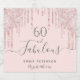 Simple and elegant 60th birthday wine label. A feminine rose gold, blush pink background decorated with rose gold faux glitter drips, paint dripping look. With the text: 60 and fabulous. Personalize and add a name and a date. Date of birth or the date of the party. Grey text. The word Fabulous is written with a modern hand lettered style script with swashes.