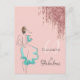 A feminine, modern and glamorous birthday invitation. A girly rose gold background color. A sketch of a woman in a mint green colored dress. Rose gold faux glitter drip, paint drip look on top. The text: 60 and Fabulous. Templates for a name and party details on the back.