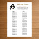 This “60 Funny Penguin Greeter Wedding Seating Chart” will fit 60 guests. Your guests find their places, and they can enjoy your special celebration.