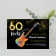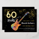 60 Rocks with this cool rock music themed 60th birthday party modern invitation. Rock and roll colourful funky electric guitar with gold glitter and musical note illustrations with personalized gold modern calligraphy typography on a black background. This easy to use template creates the perfect personalized invitation to celebrate sixty in rockstar style. Perfect if you have a live band or are a guitarist, musician and music lover. Unique multicolored psychedelic musical instrument original artwork by artist Catherine Sweetman