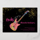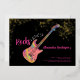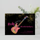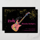 60 Rocks with this cool rock music themed 60th birthday party modern bright pink, black and gold glitter invitation. Rock and roll pink colourful psychedelic electric guitar with gold glitter and musical note illustrations with personalized gold modern calligraphy typography on a black background. This easy to use template creates the perfect personalized invitation to celebrate sixty in rockstar style. Perfect if you have a live music band or are a guitarist, musician and music lover. Unique musical instrument original artwork by artist Catherine Sweetman