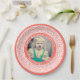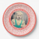 60 Your Photo Random Number Pattern Coral/White Paper Plate