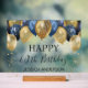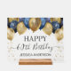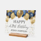 Ballons de parties scintillant en faux bleu et or élégants sur la bordure supérieure. Tout le texte est ajustable et facile à changer pour vos besoins de fête. chaque année, l'âge peut être changé. Supprimez et ajoutez votre propre texte.