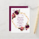 Sur le devant : Une invitation pour une élégante fête du 60e anniversaire. Un arrière - plan blanc chic avec un cadre géométrique en faux or. Décoré de fleurs bordeaux foncé et rose aquarelle, de plumes roses et boho. Modèles pour un nom et les détails de la fête. Le nom est écrit avec un script de style écrit à la main, des lettres de couleur bordeaux. Retour : arrière - plan de couleur bordeaux.