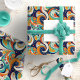 This 60s inspired swirls abstract design brings a modern twist to the dynamic hippie-era style with it's playful shapes and bold palette of turquoise, golden yellow, navy blue. The colourful composition captures the essence of modern psychedelic patterns. The playful swirling shapes and bright colour palette make this gift wrap design ideal for a variety of fun occasions like kid's birthdays, hippie-era events, retro-themed parties or creative workshops. Try out Zazzle's handy transfer option or search ID1069 to see additional patterns and products in this design set. Note: pattern adapted from generative content.